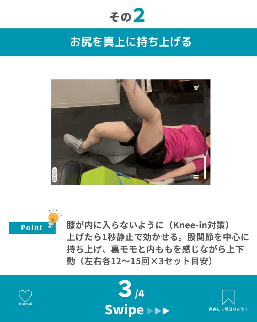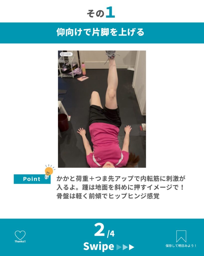 いかがでしたか?裏モモと内ももを同時に活性化して、美脚づくりと下半身の安定を手に入れましょう。保存して今夜のトレーニングに!